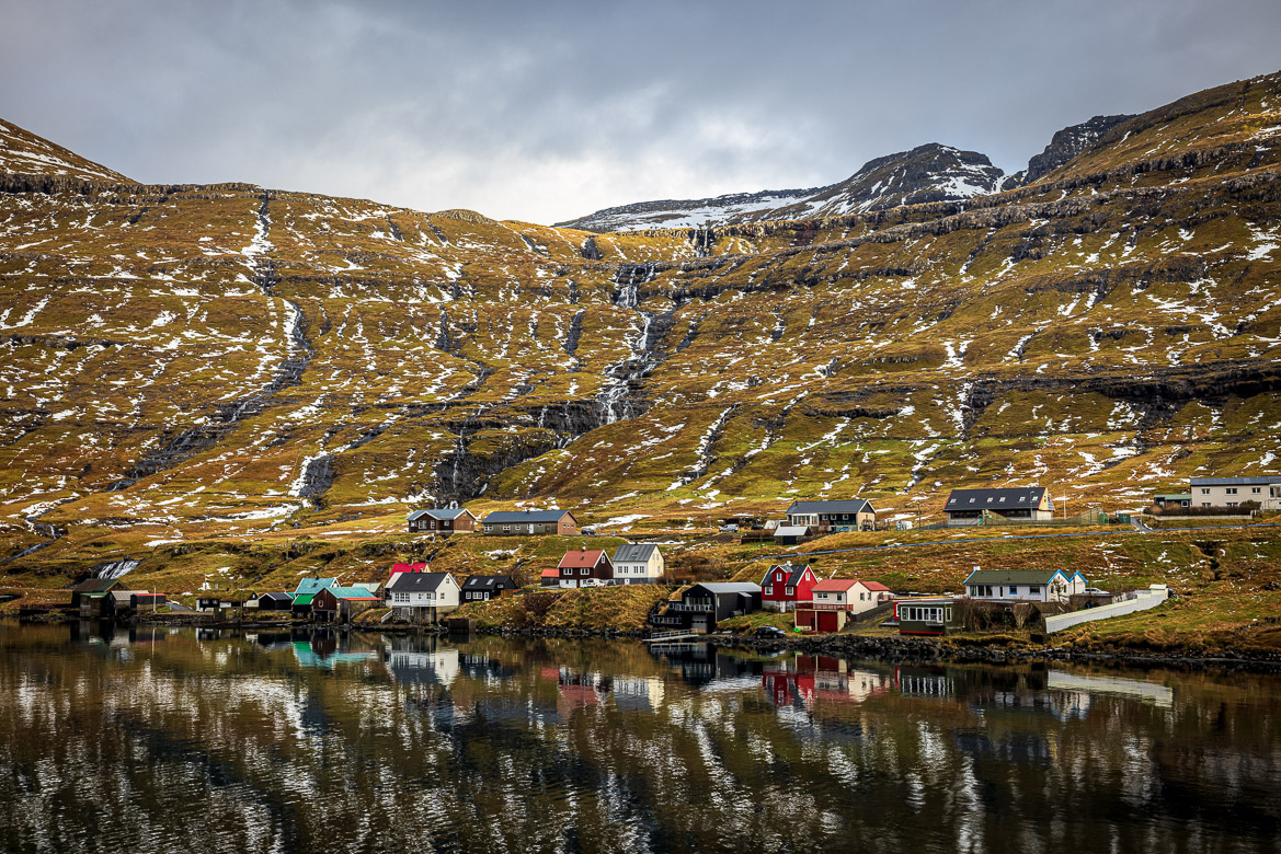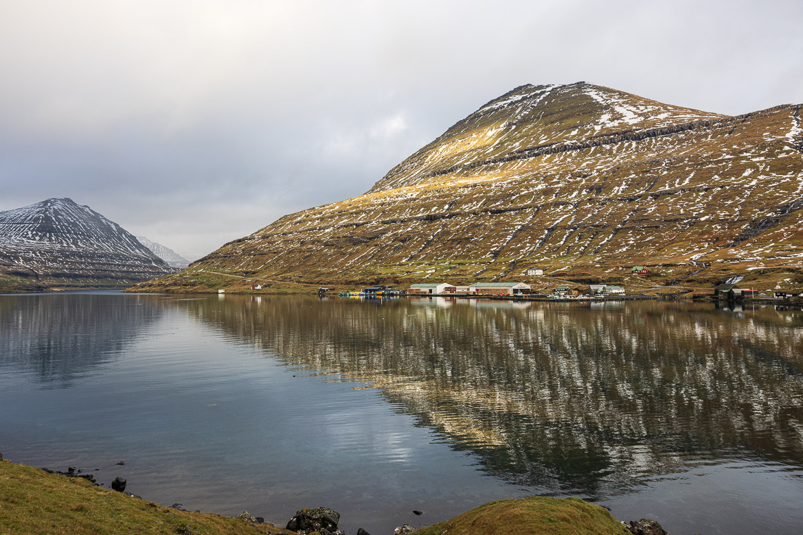 The fjord, where Elduvik is situated is Funningfjørður. And at the very end of the fjord is a village with the same name, Funningfjørður. The fjord turns 90 degrees as you come further in and at the end of the fjord the sea is therefore often quite calm, and driving past we were met with som great reflections of the village and mountains into the sea. We just had to stop and capture it.