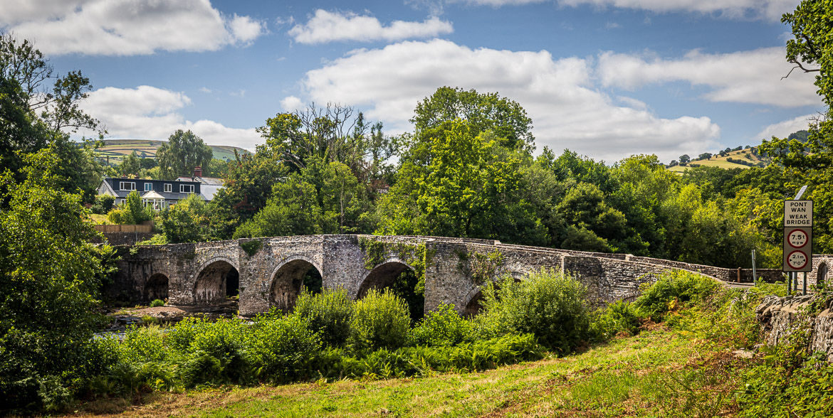 River Usk starts its life on the slopes of the Black Mountains in the Brecon Beacons and finishes in Newport. The oldest bridge across the river may be in Llangynidr, northwest of Abergavenny and southeast of Brecon. It is a stone bridge with six spans and in total 69 metres long. It was built in the year 1700 and the right to collect tolls from those crossing the river extended into the 19th century. It is now Grade I listed.