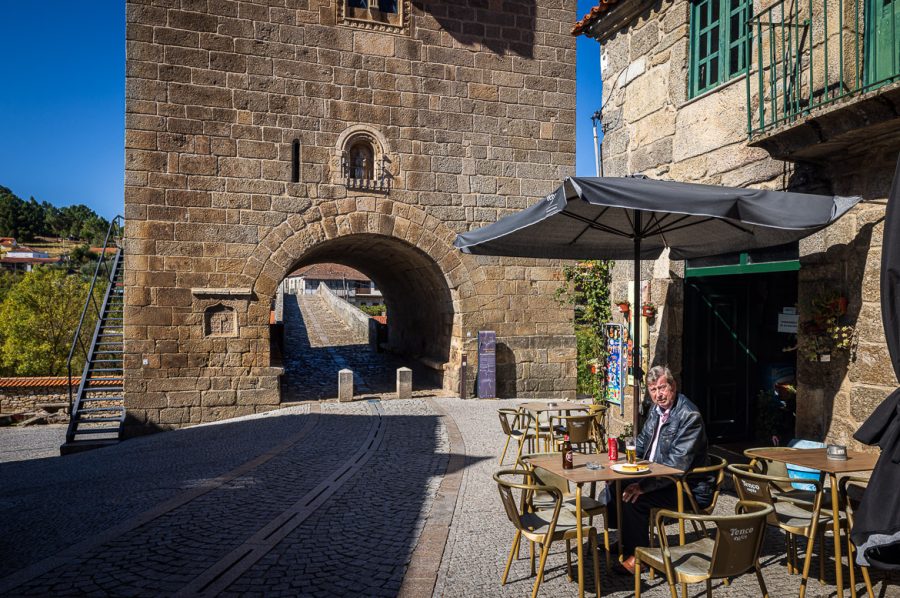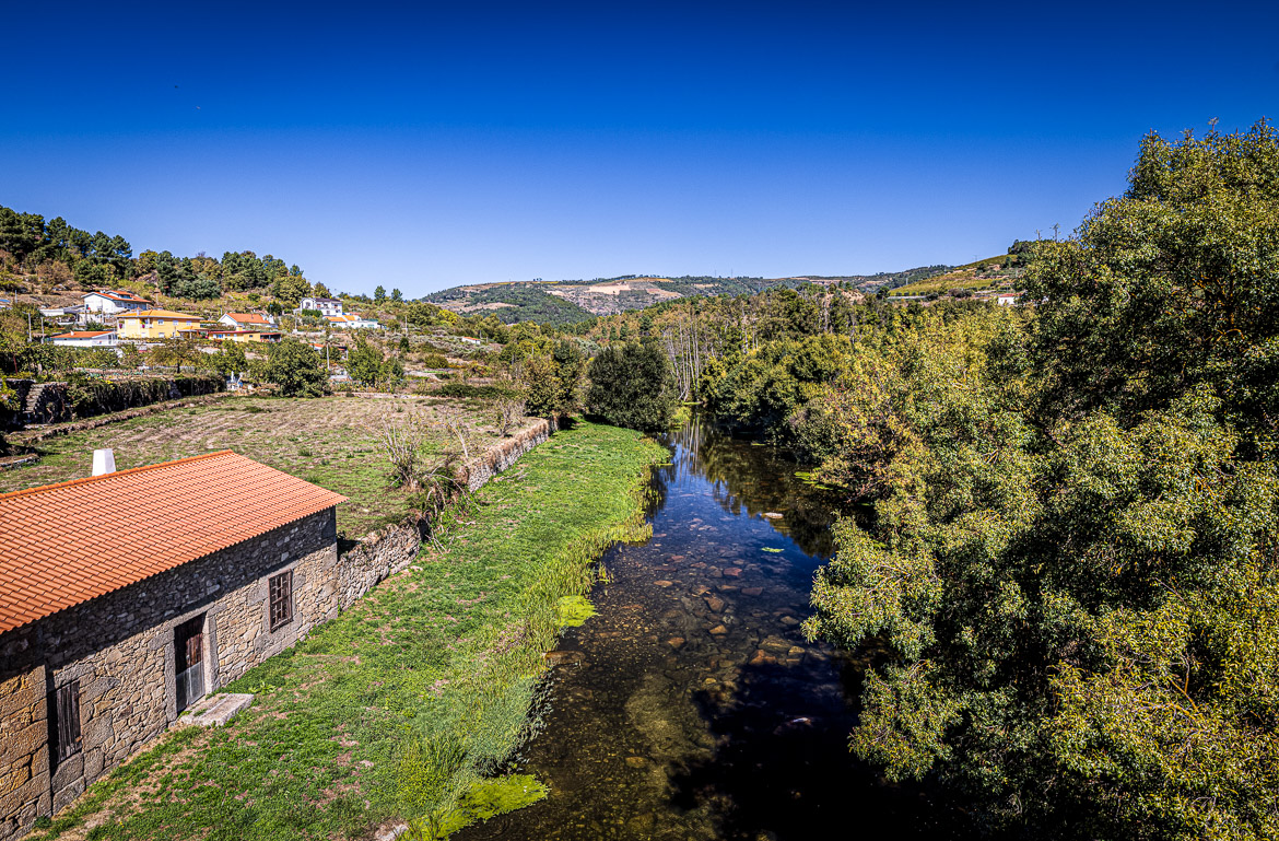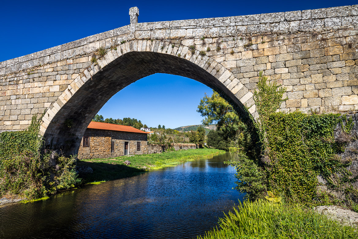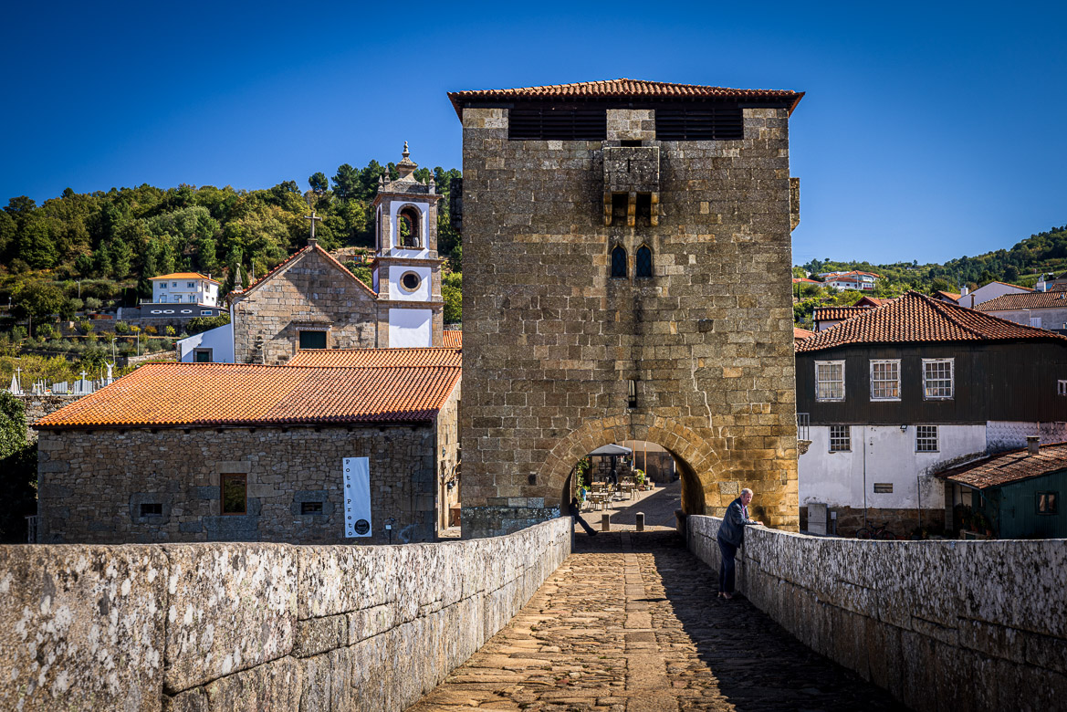 The bridge consists of five irregular spans over the river, with the middle span much larger than the others. The ruins of the original monastery are 3 km away from the bridge, but a more recent church has been erected in the immediate surroundings of the bridge in the village of Ucanha. The bridge is very attractive and next to it is a nice little café/restaurant, where we were the only guests on this lovely October day.