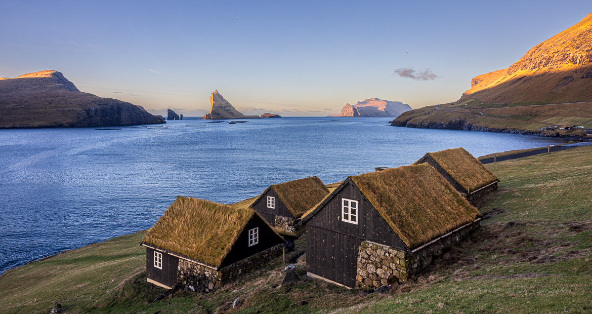 There is water everywhere, in the sea and fjords, in the rivers and waterfalls, and of course, in the form of rain hitting us from above or whipping us from the side due to the hard winds. The traditional buildings are built of wood protected by black tar with the roofs covered I turf.