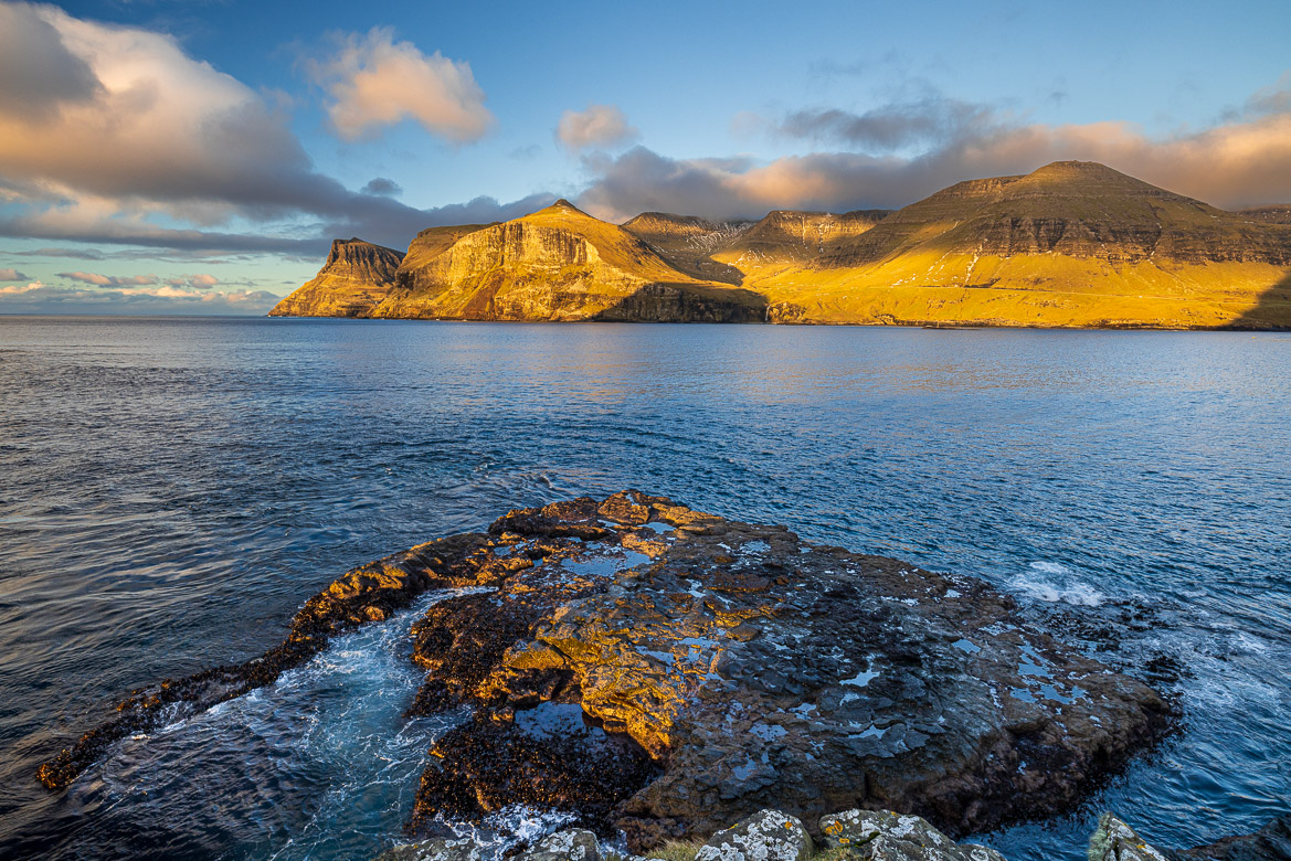 Jennifer and I visited the islands during 9 days in November this year (2025). We flew in via Copenhagen, but you can also fly from Edinburgh certain days of the week. We stayed at a very nice hotel just outside Torshavn, The Føroyar, on a hill overlooking the small capital of 20,000 inhabitants. During a part of our trip we joined a group of photographers, many of which we had met before. Some places we discovered on our own, but at other locations we had the guidance of Mark McColl, whom had put the photography trip together. And in the evening we joined in a number of exquisite dinners at different places. We were not prepared for all the pleasant restaurants in Torshavn still open in November. But outside Torshavn we mainly had hot dogs bought at petrol stations that also served as small shops and cafés.