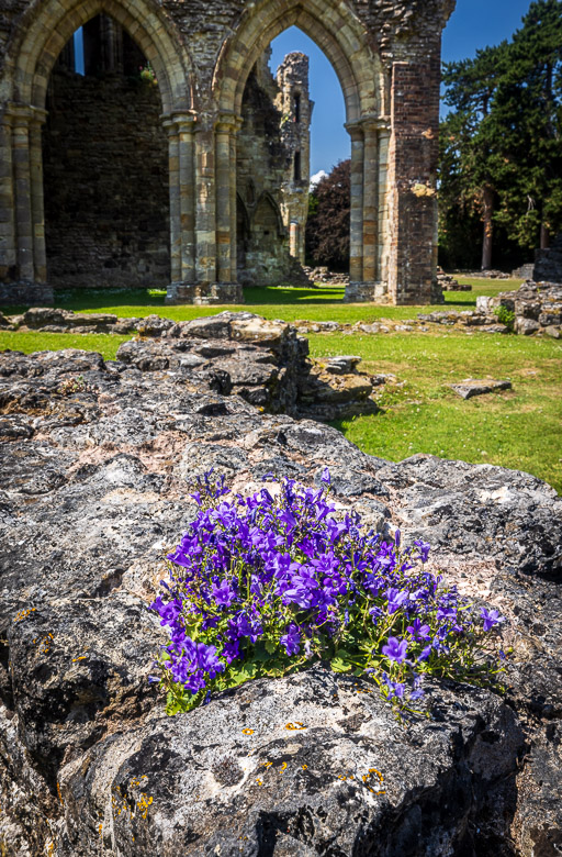 The ruins from the nave in the foreground and the south transept in the background. The flowers can actually be seen also in the previous image, if you look carefully