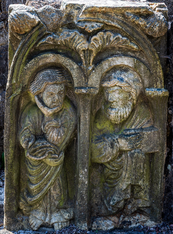 The “Two Apostles” stone panel preserved on the lavabo (possibly James and John)